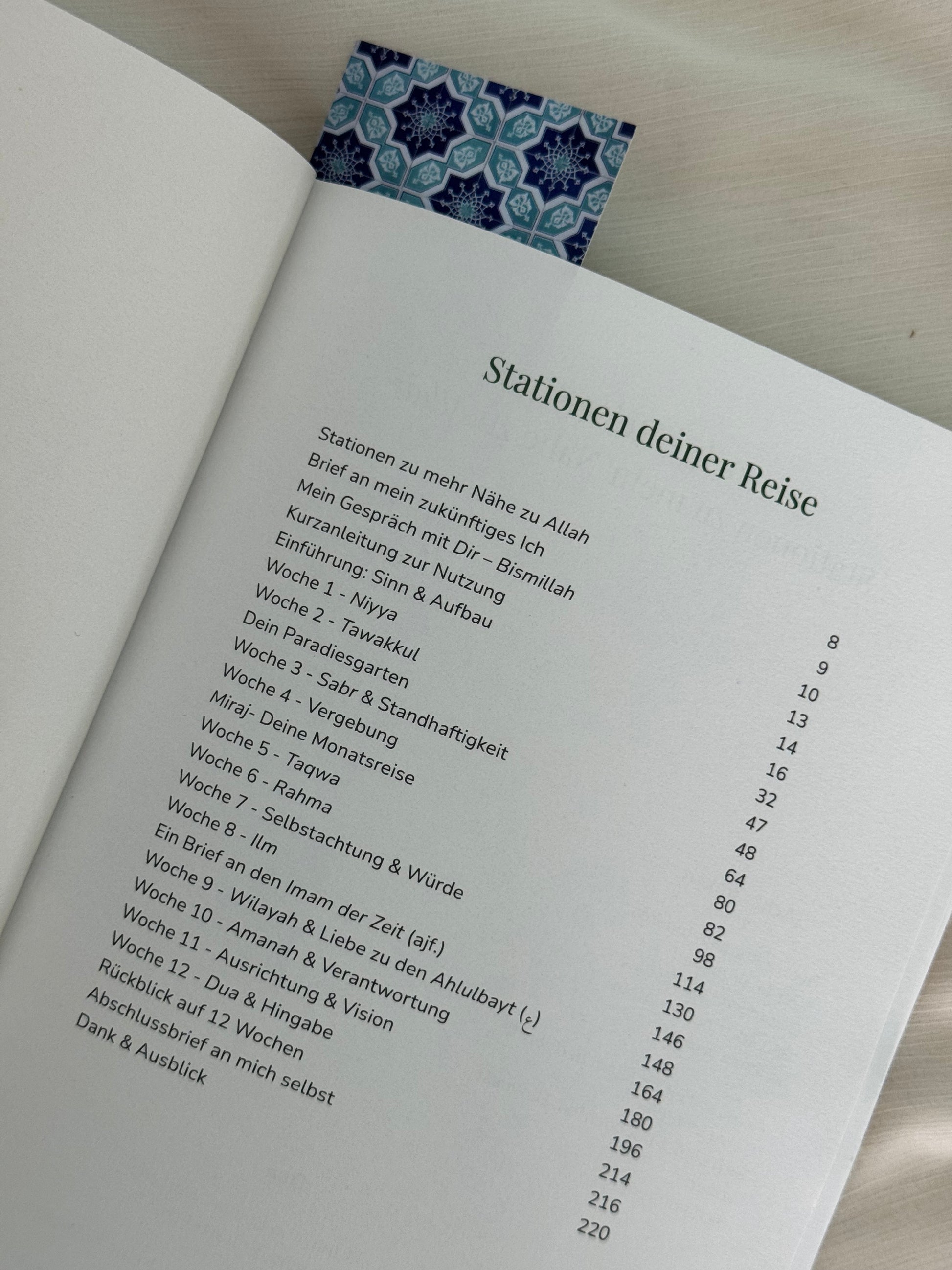 Inspiriert durch die Weisheit der Ahlulbayt (as.) enthält es täglich strukturierte Impulse, Reflexionsfragen, Hadithe, Gedichte und interaktive Übungen. Es schafft Raum für Achtsamkeit, spirituelle Routinen und innere Ruhe – ideal für alle, die bewusster leben und tiefer fühlen möchten.